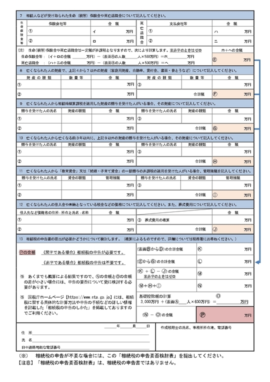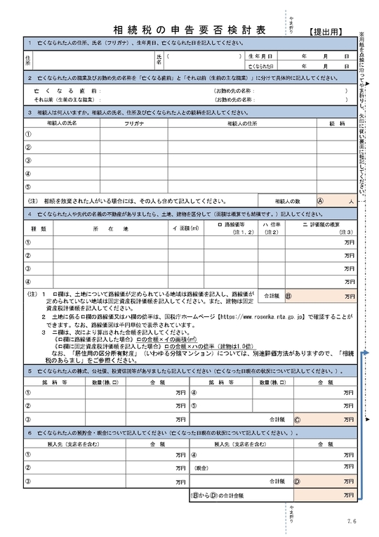 即座に、「相続税の要否検討表」を税務署に返送してください。